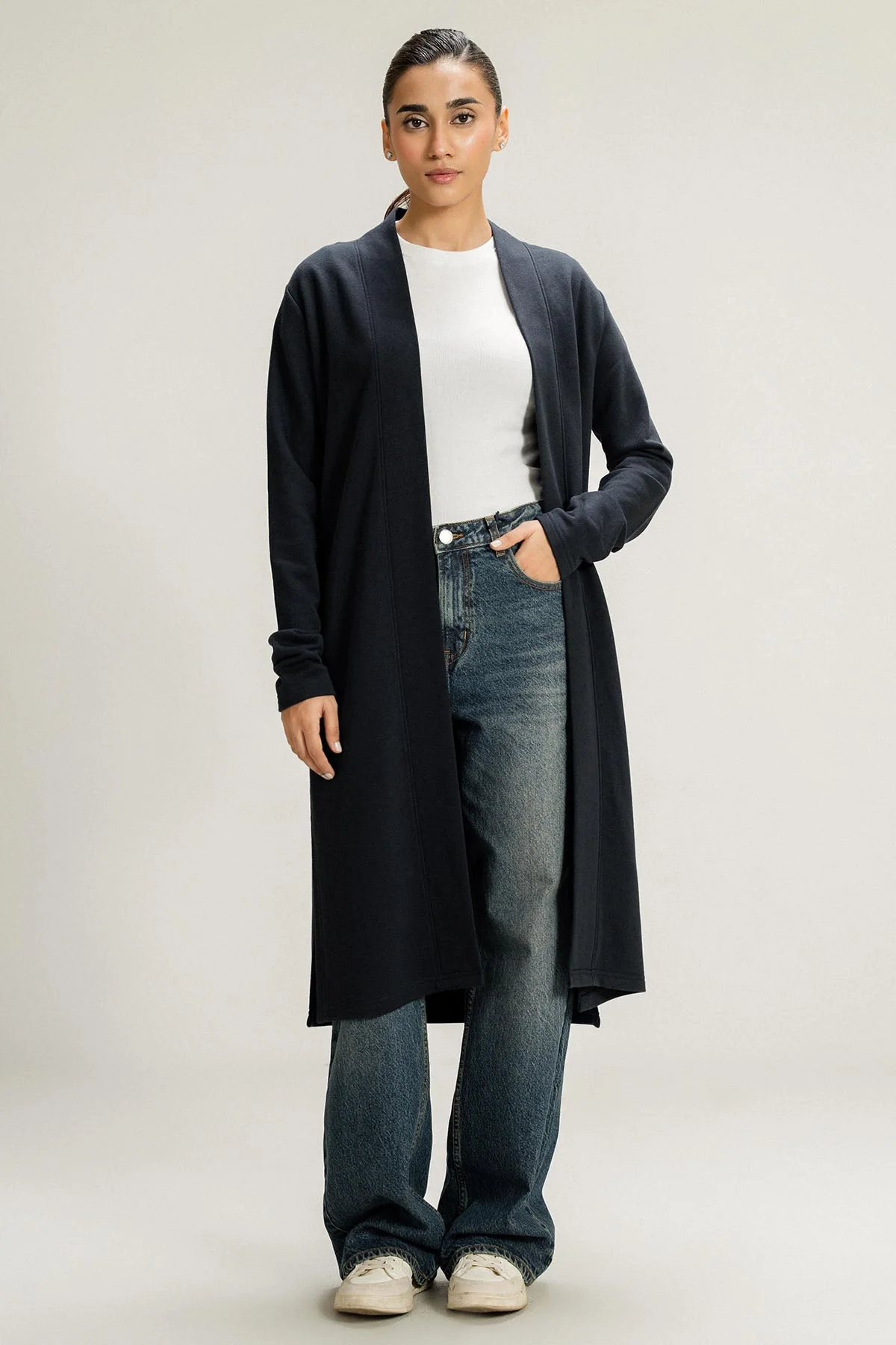 BASIC LONG CARDIGAN - PIMA TERRY
