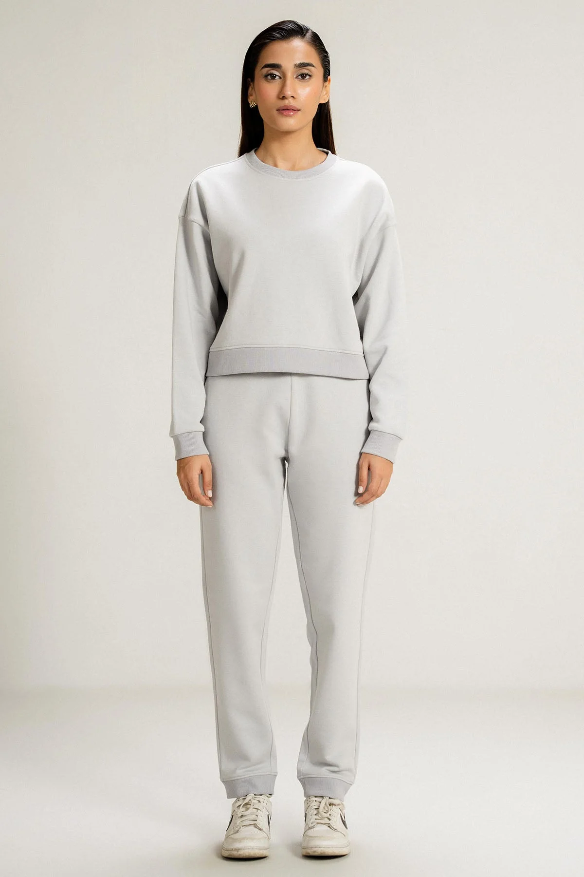 Relax in comfort with this ash grey crewneck sweatshirt, made from soft fleece. Featuring a drop shoulder design, its cozy, minimalist style makes it the perfect choice for effortless, everyday wear with timeless appeal.