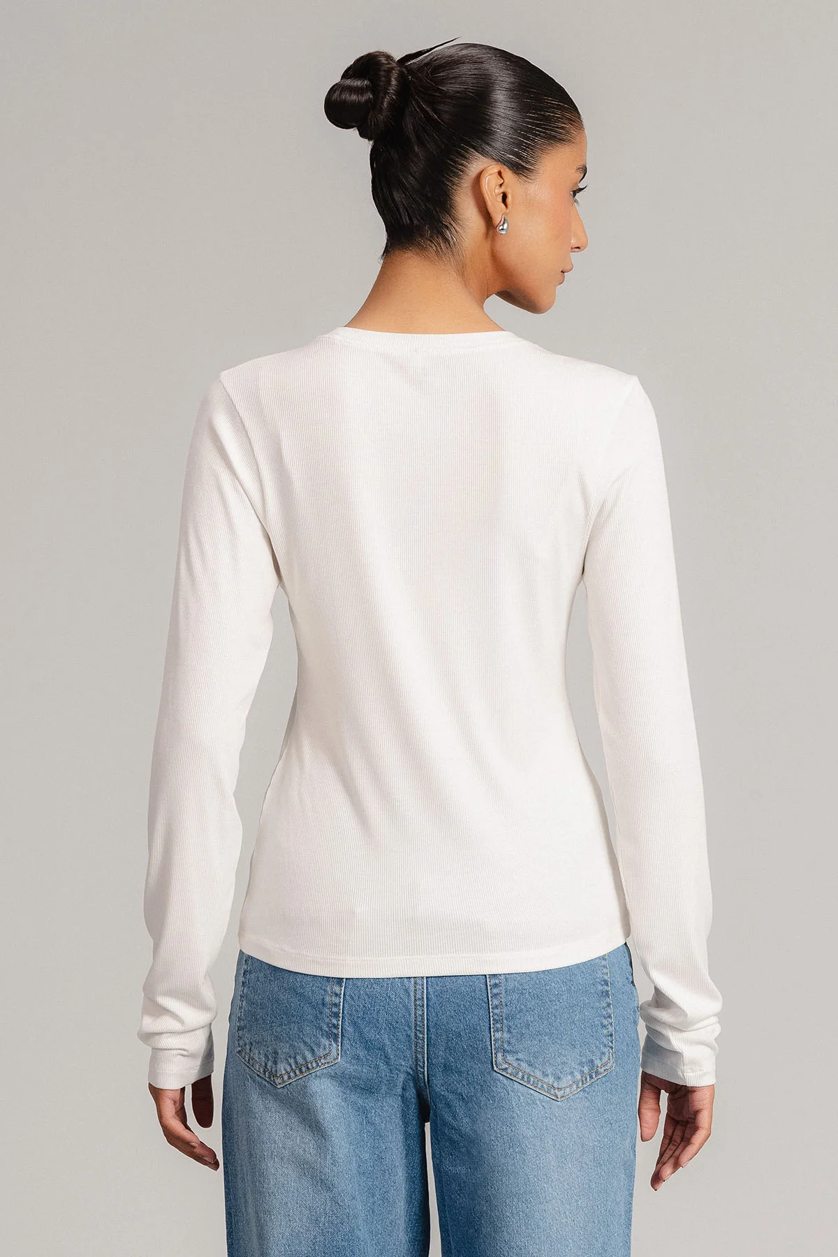 A sleek essential designed for effortless style and comfort, this Long Sleeve Ribbed T-Shirt is crafted from a soft yet resilient blend of viscose, acrylic, and spandex. The ribbed texture enhances its structured yet flexible fit to ensure a smooth, flattering silhouette and spandex offers just the right amount of stretch for ease of movement. Whether worn solo or layered, this breathable, form-fitting tee retains its shape, softness, and luxe feel, even after multiple washes.