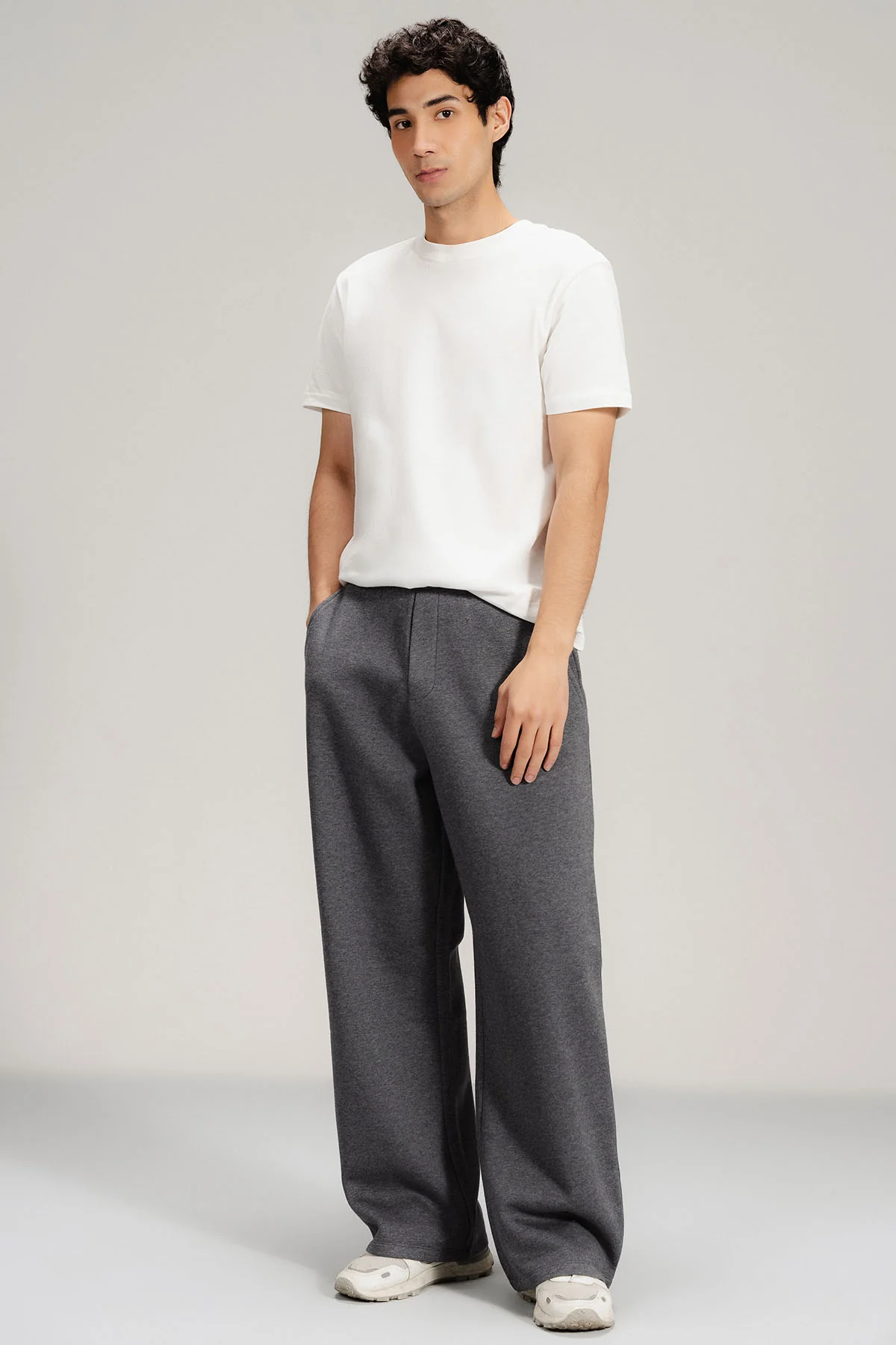 Dark Grey Relaxed pants in fleece fabric, designed with a regular fit for comfort and ease. Perfect for lounging or casual outings, they offer a soft, comfortable feel for everyday wear.
