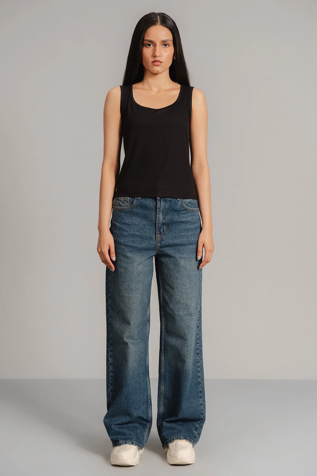 RIBBED ROUND NECK TANK TOP