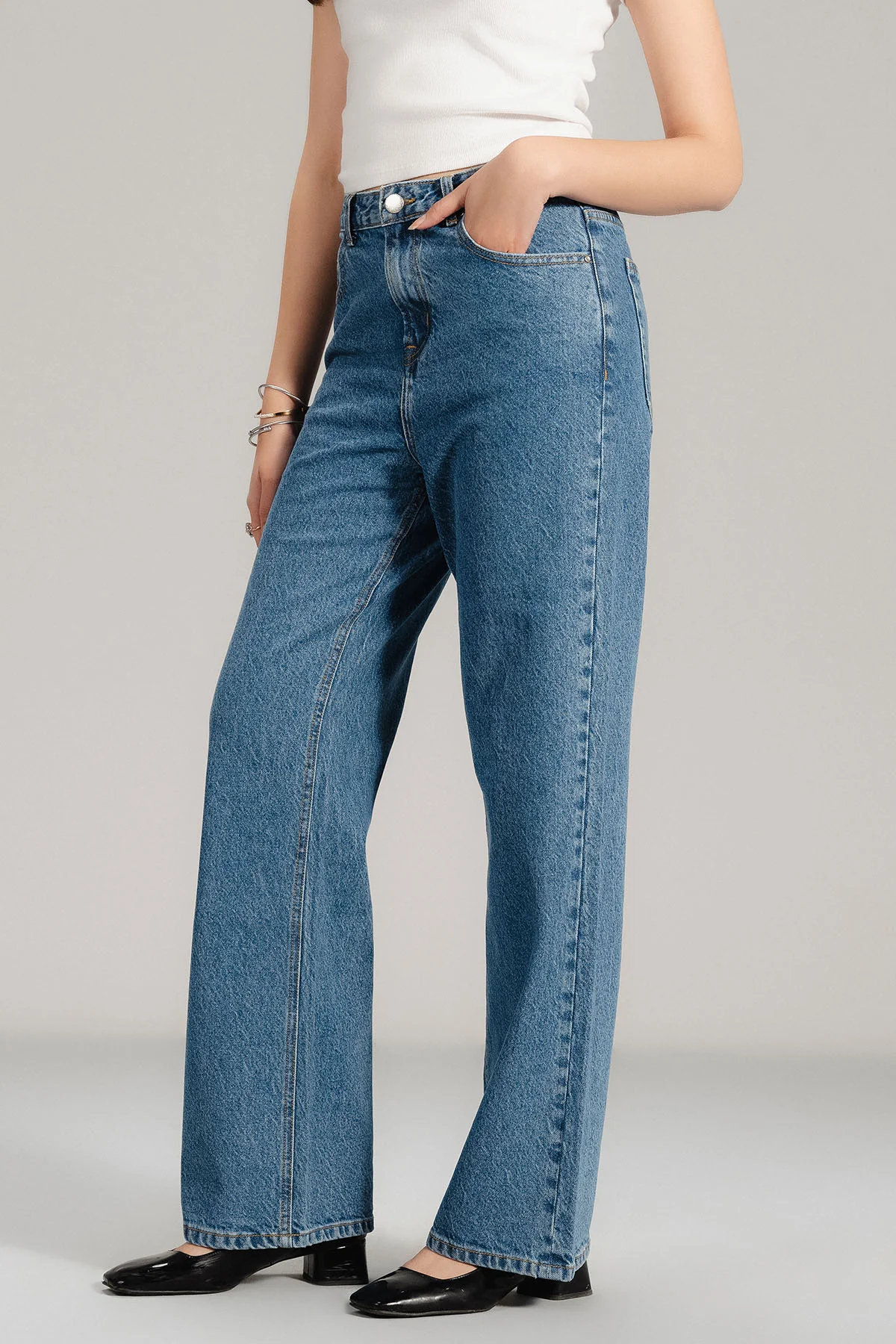 Upgrade your wardrobe with our FLARE FIT jeans in tint blue. The clean, relaxed design provides both comfort and effortless style. A must-have for any fashion-savvy individual.