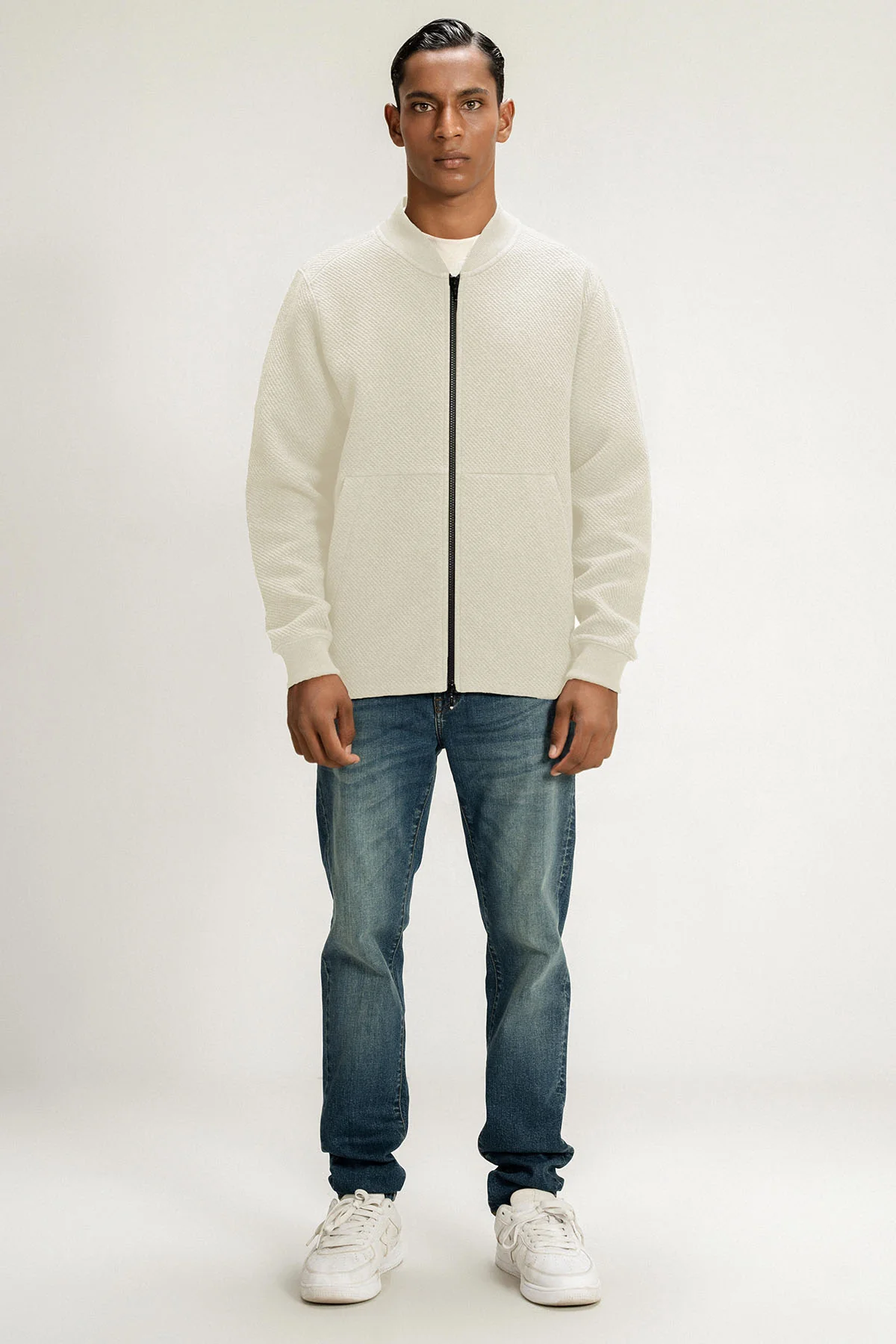Wrap yourself in comfort with our Textured Full-Zip Jacket, crafted from our luxurious Textured Double Knit fabric. Featuring a relaxed fit and a soft, breathable texture, it’s designed for effortless, everyday wear. The jacket includes two concealed front pockets for a sleek look and added functionality, along with raglan sleeves for enhanced mobility and a modern silhouette. A ribbed collar adds a casual, modern touch, elevating the jacket’s versatile appeal. The full-length zipper offers added convenience, making it perfect for layering. Once you experience the unmatched quality of our Textured Double Knit, you’ll never see jackets the same way again. This premium fabric combines natural breathability, four-way stretch, and pill resistance, offering the perfect balance of softness, durability, and performance. Pair it with joggers or jeans for a versatile, stylish look that’s perfect for any casual occasion.